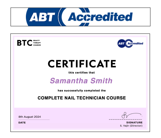 To become a nail technician, it is important to attend a recognized training course which qualifies you to perform nail treatments. BTC's fully accredited nail courses allow you to gain the appropriate insurance to carry out treatments professionally. Insurance is available through various bodies, including ABT, Salon Gold and The Guild.